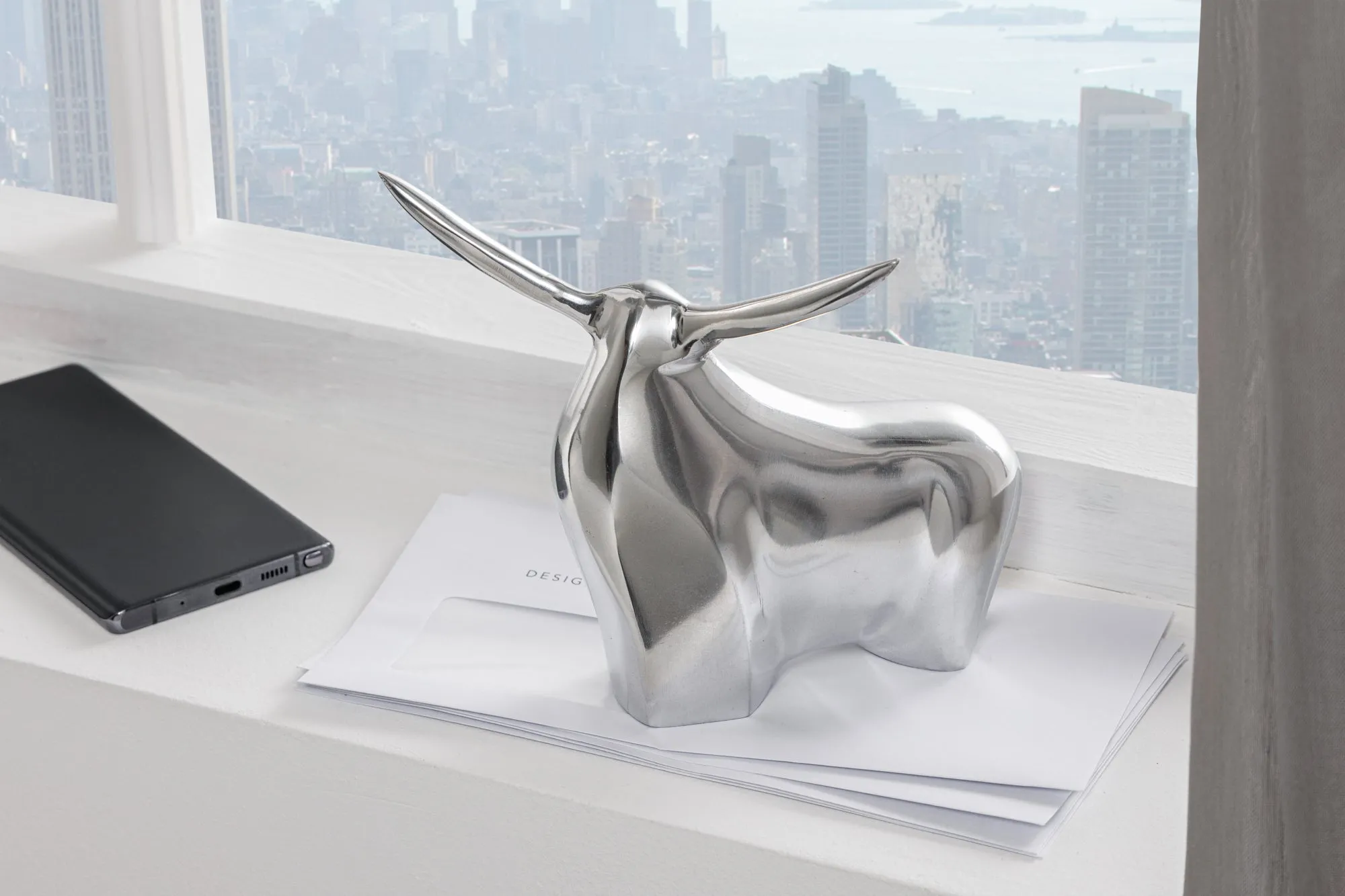 BIG BULL Moderne Skulptur silber Aluminium Dekoration Stierfigur Briefbeschwerer