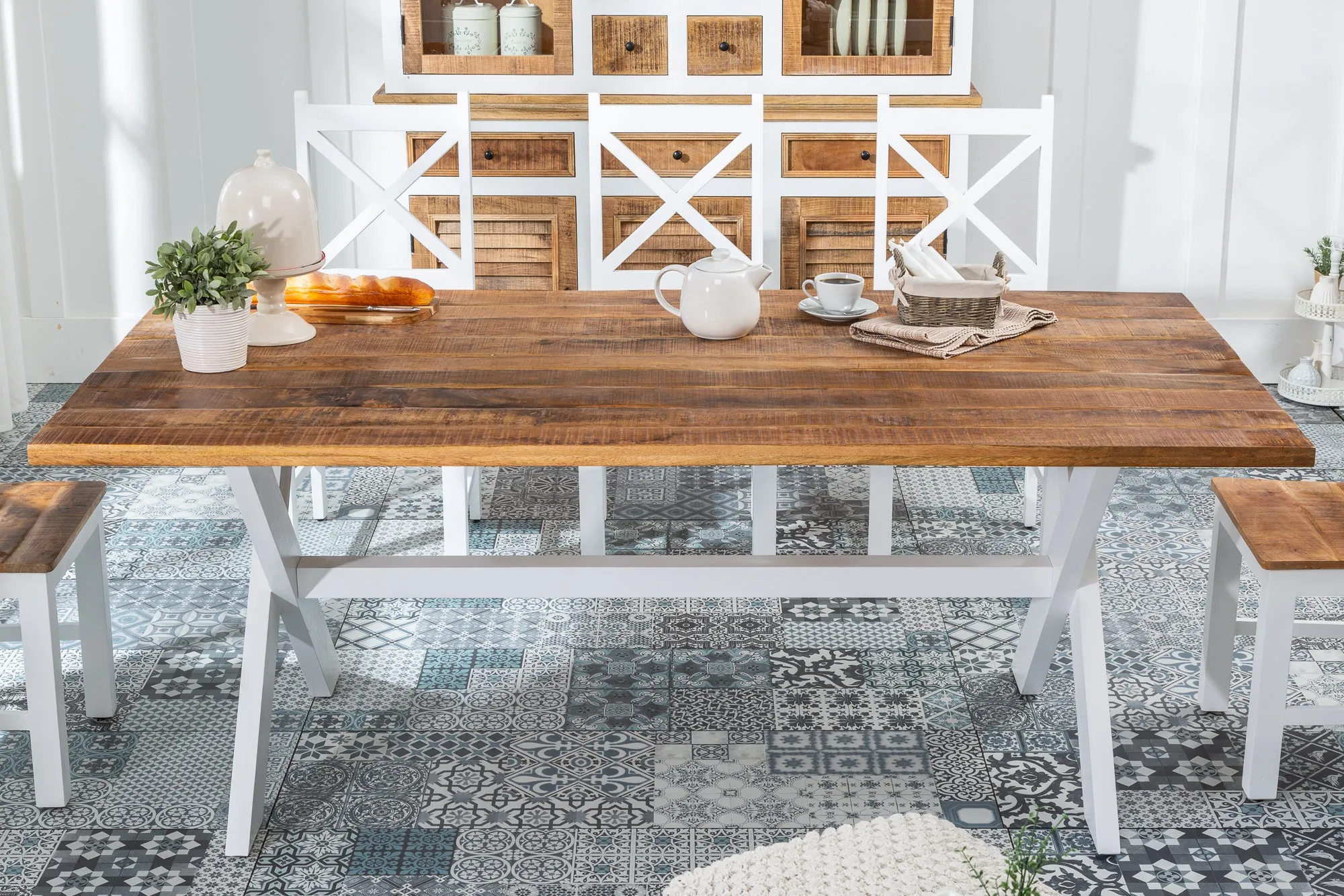 LONG ISLAND Massiver Esstisch 200cm Mangoholz X-Gestell Landhausstil