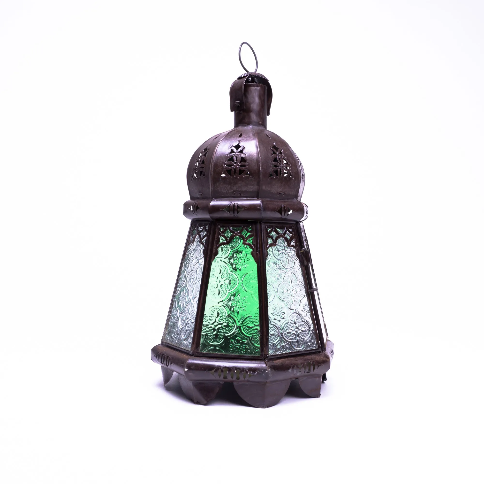 Laterne ‚Mathamane‘, grün, weiß, H 30 cm, Ø 16 cm