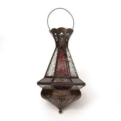 Aktion!Laterne ‚Tria Khalid‘ mit Glas rot, klar, antik-braun, Ø 16 cm, H 28 cm