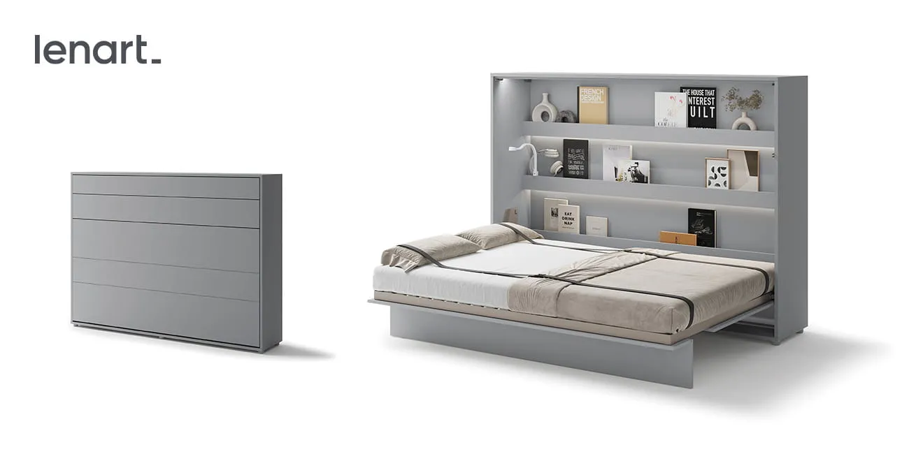 Wandklappbett Bed Concept BC-04 140×200 Schrankbett Horizontal Lenart Gästebett Grau