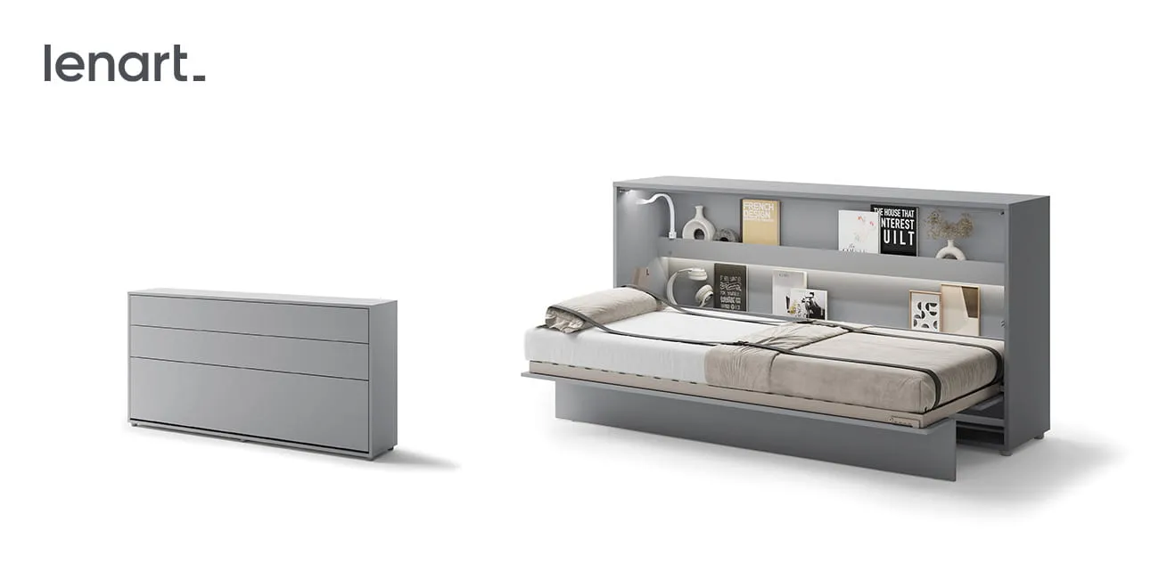 Wandklappbett Bed Concept BC-06 90×200 Schrankbett Horizontal Lenart Gästebett Grau