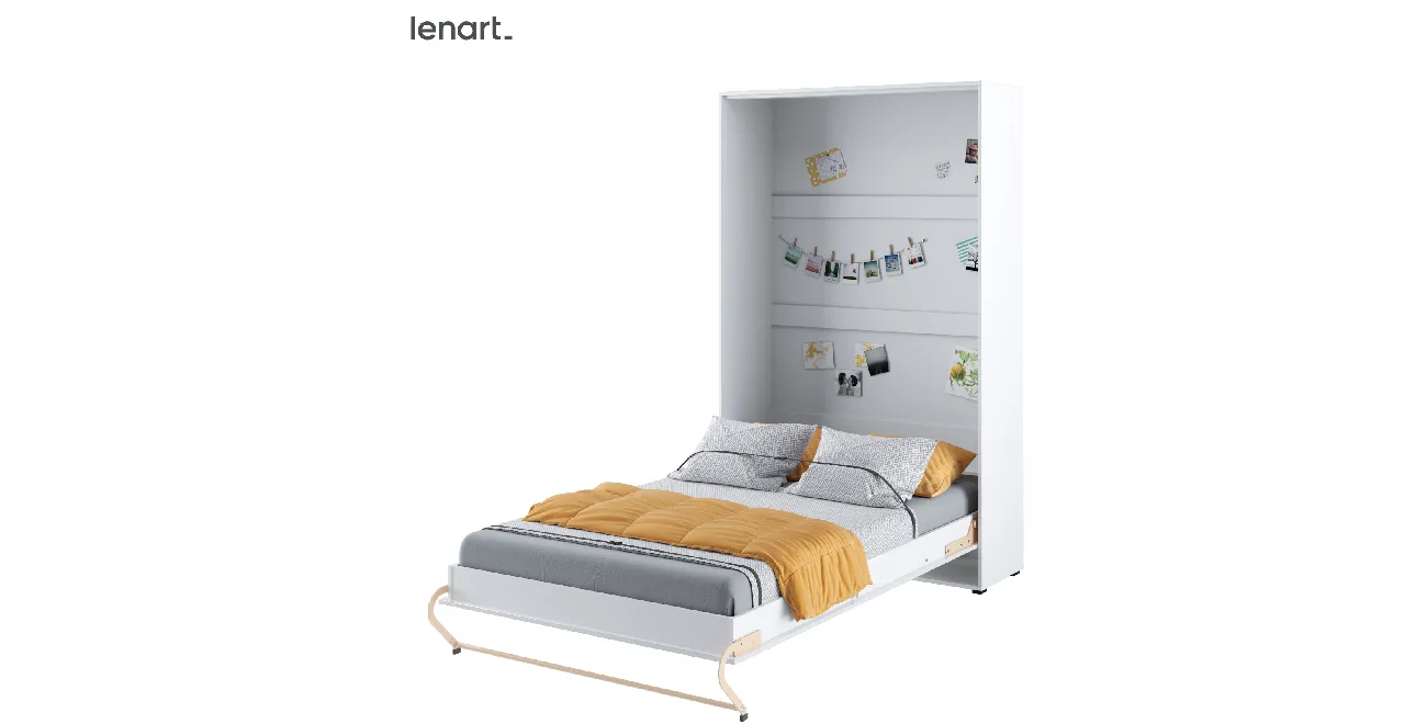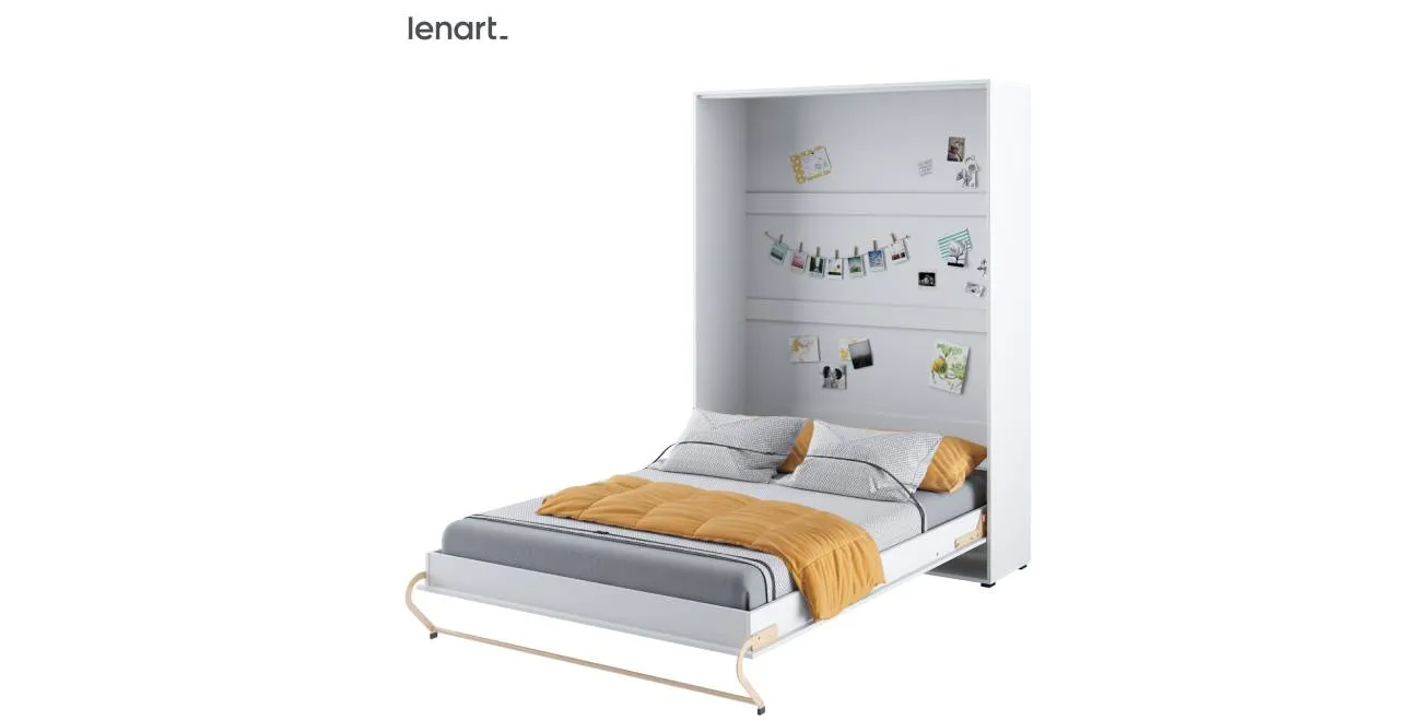 Wandklappbett Concept Pro CP-01 140×200 Schrankbett Vertikal Lenart Bett Weiß Hochglanz