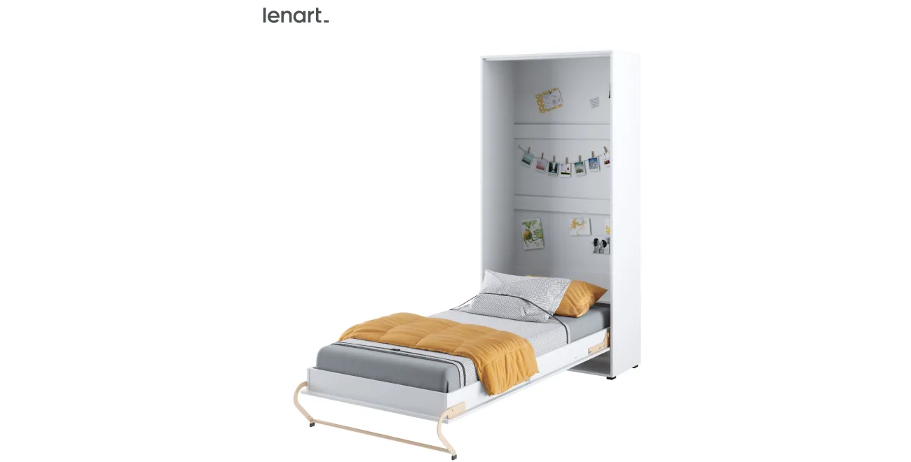Wandklappbett Concept Pro CP-03 90×200 Schrankbett Vertikal Lenart Bett Weiß Hochglanz