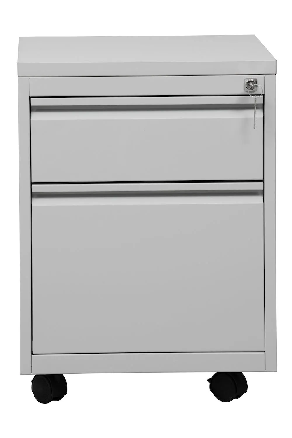 Aktion!Rollcontainer Fox | 1 Schublade & 1 Hängeschub | Schwanenhalsgriff | HxBxT 62x46x60 cm | Holzabdeckplatte | Grau