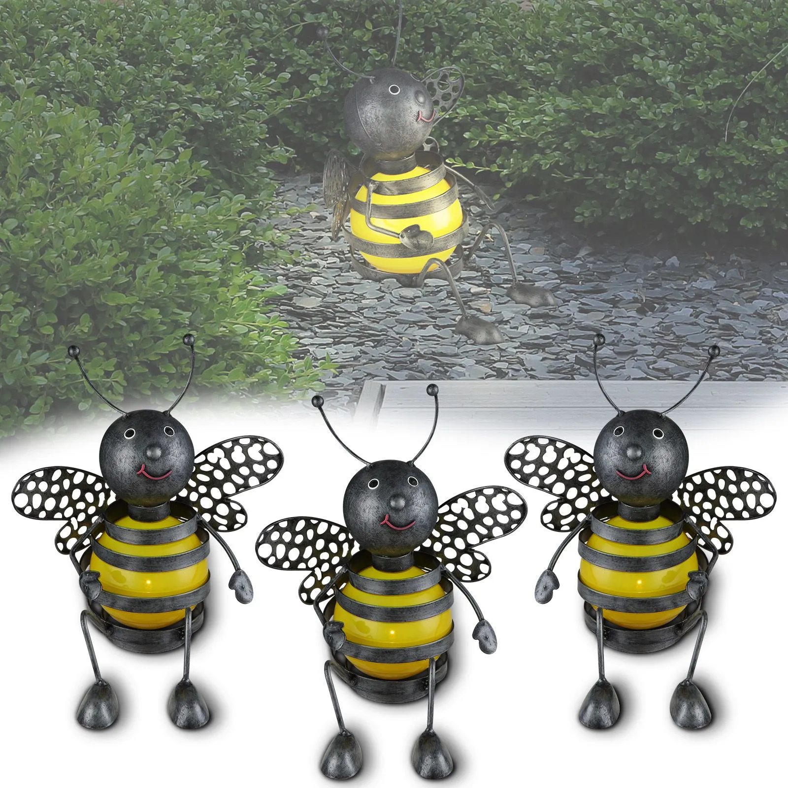 LED Solarlampe 3er Set Solarleuchten Gartenleuchte Metall Biene Außen Deko Kugel