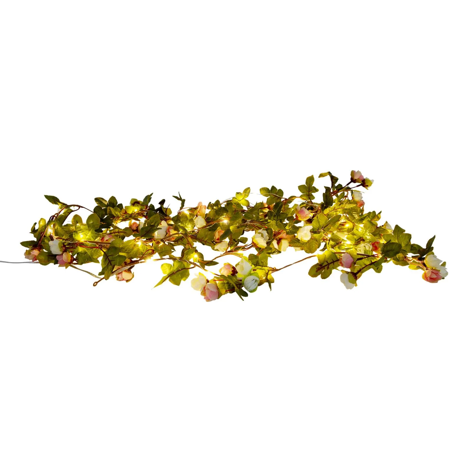 Lichterkette Outdoor LED Strom 4 m Blumen Rosen Kunstblumen Girlande