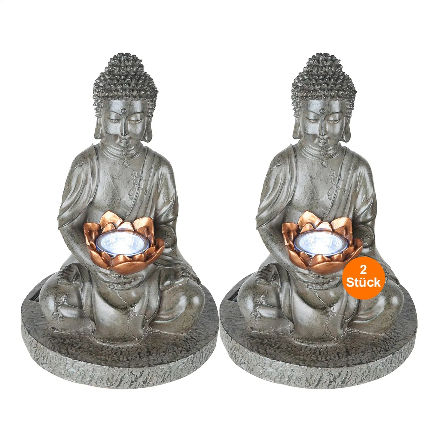 • Solarleuchten Garten Balkon 2er Set Buddha Solarlampe Außen Außenleuchte Solar