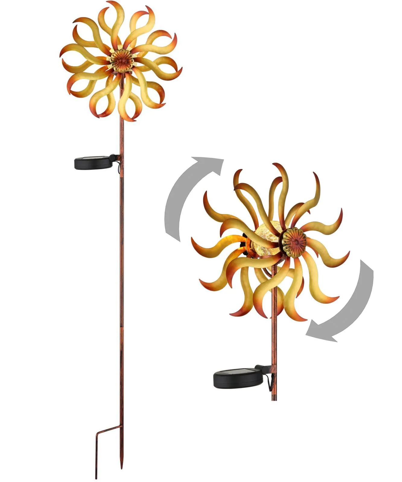 Windrad Metall Garten Solar Solarleuchte Außen Solarlampe Windspiel Gold