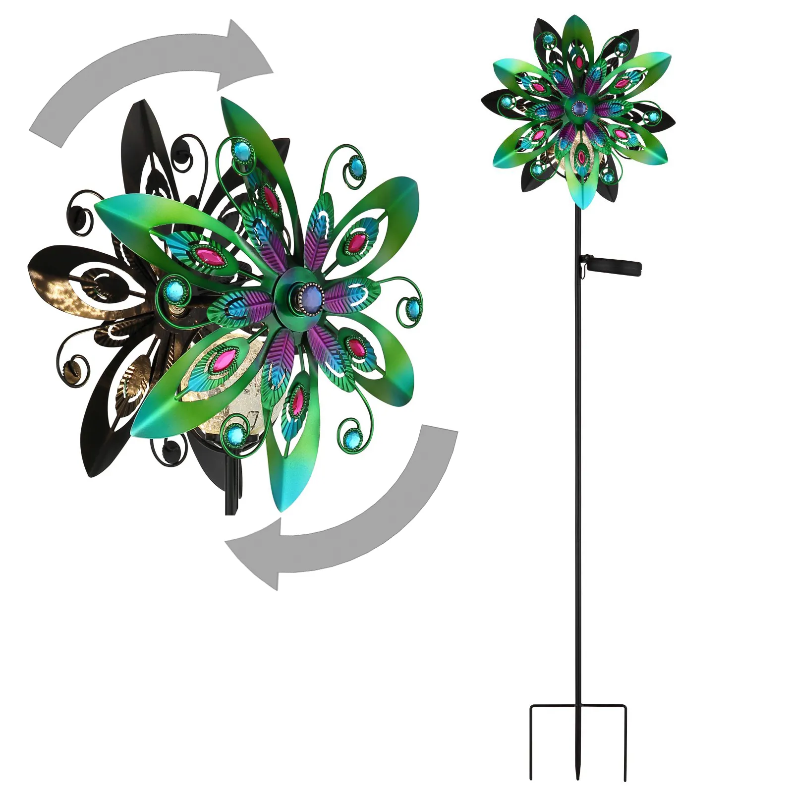 Windrad Metall Garten Solar Solarleuchte Außen Solarlampe Erdspieß Grün