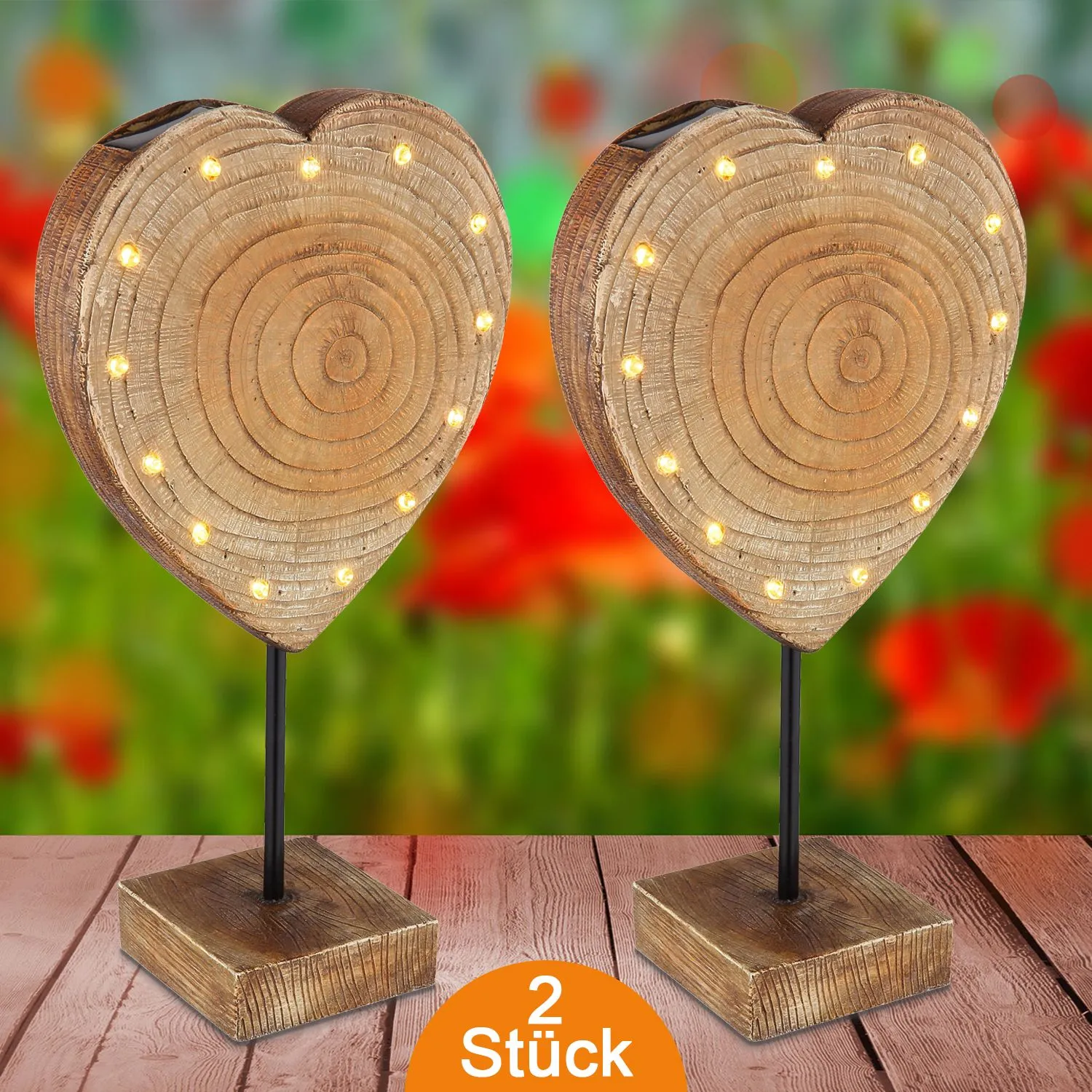 • Solarleuchte Garten Herz 2er Set 50 cm Solarlampe Außen Außenleuchte Solar