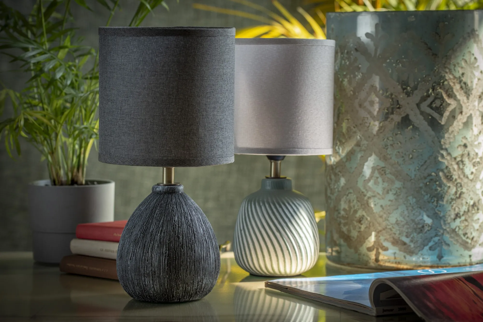 Keramik-Tischleuchte ‚Barton‘, grau, Ø 14 cm, H 26,5 cm