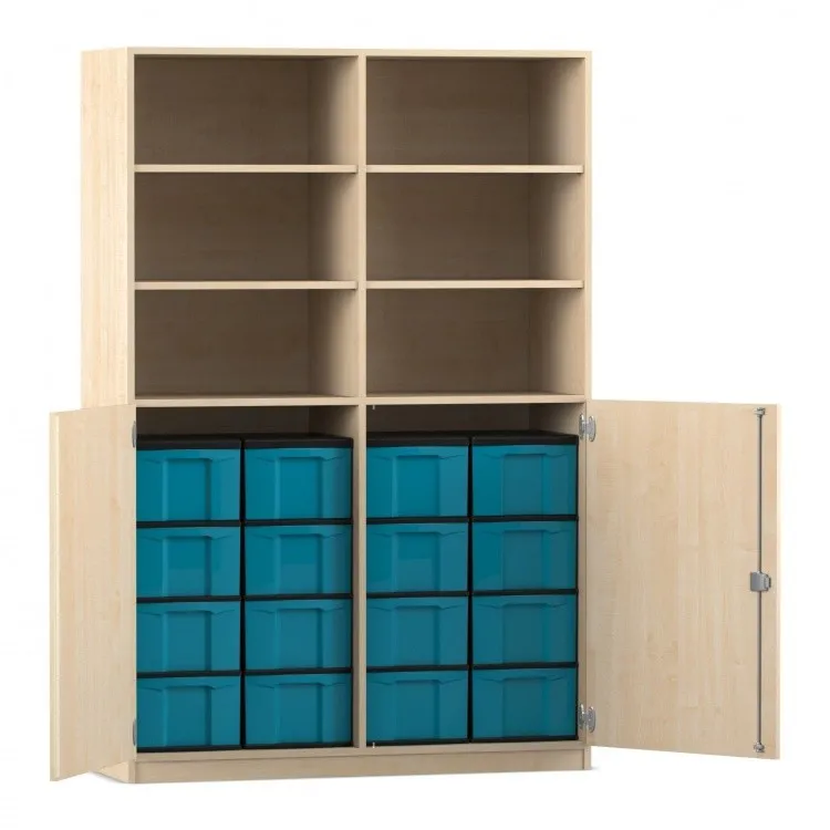 Flexeo Schrank, 24 kleine Boxen, 3 Fächer, 4 Halbtüren