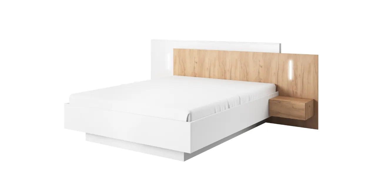 Bett mit Nachttischen und Beleuchtung XELO Craft Eiche gold/weiß