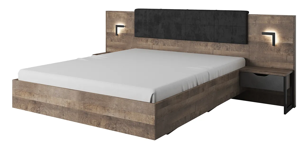 • Bett mit Nachttischen und Beleuchtung  XELO Craft Eiche gold/weiß