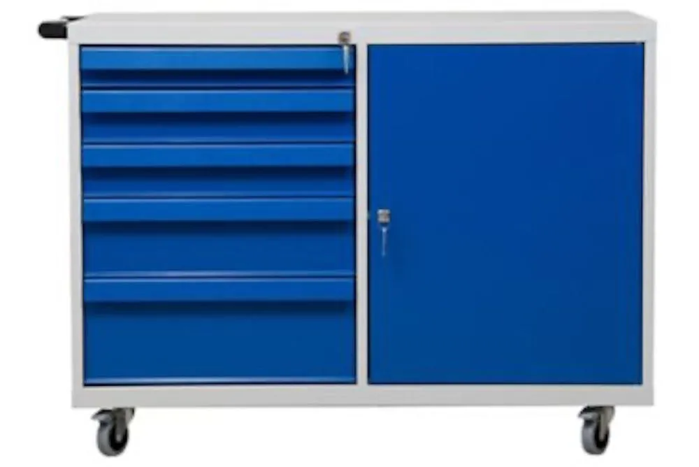 Aktion!Werkstatt-Wagen Grizzly | 5 Schubladen + Flügeltüre | HxBxT 84x109x60 cm | Grau-Blau