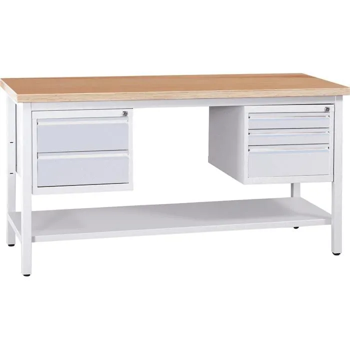 Aktion!Werkbank CRICKET mit 5 Schubladen und Ablageboden | HxBxT 84x160x60cm | Traglast 150kg | Grau-Buche