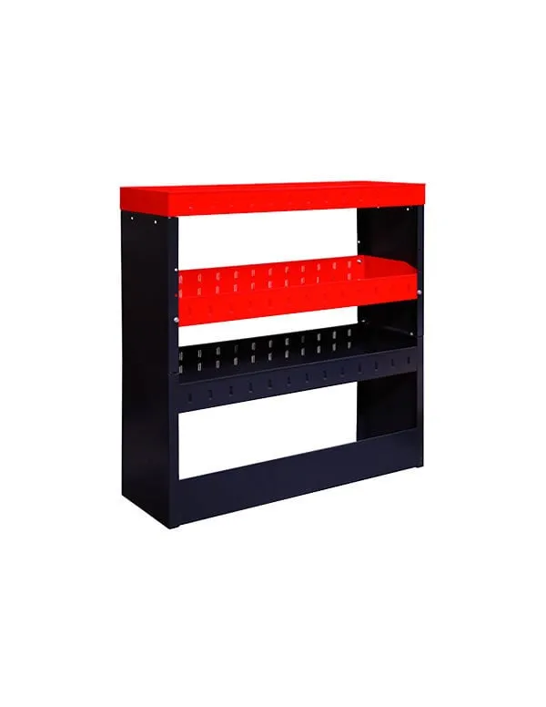 Aktion!Fahrzeugregal Raptor mit 2x unterteilbaren Böden | HxBxT 108x35x104cm | Anthrazitgrau/Verkehrsrot | Fahrzeugeinrichtung Fahrzeugausbau Werkzeugaufbewahrung Lieferwagenregal