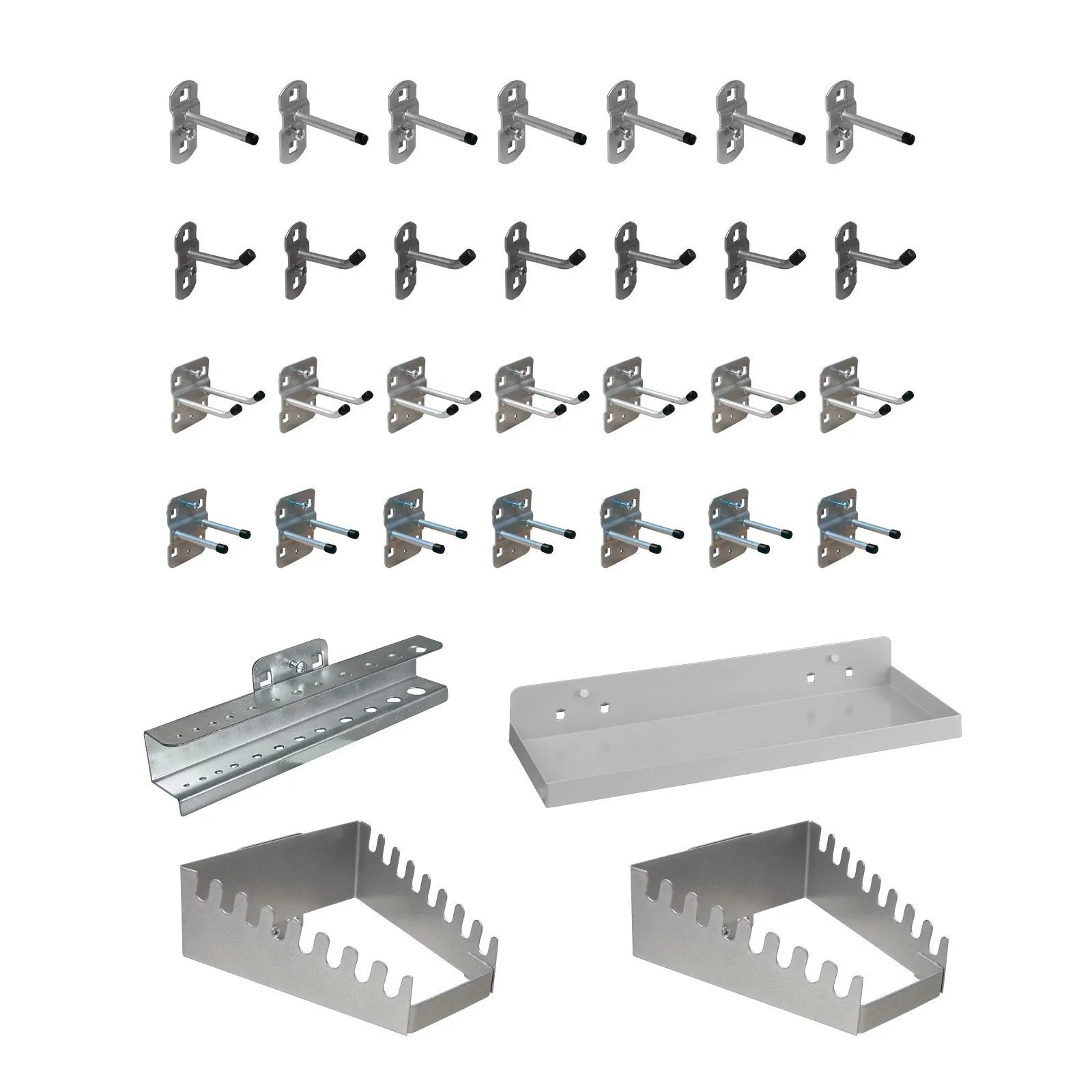 Aktion!Hakensatz Werkzeughalter für Lochplatte 32 Stück | Pulverbeschichtet | Weissaluminium