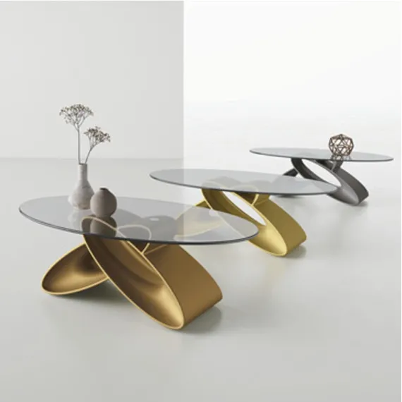 • Ausziehbarer Kristalltisch aus gebogenem Glas von Target Point