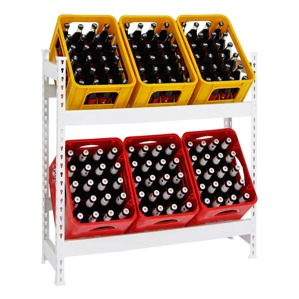 Das Getränkekistenregal CAMEL von PROREGAL ist ein qualitativ hochwertiges Getränkekistenregal und durch das einfache Stecksystem schnell zu montieren. Das Regal hat eine hohe Stabilität und ist ideal, um im Aufenthaltsraum, in der Garage oder in der Kantine die Getränkekisten aufzubewahren.