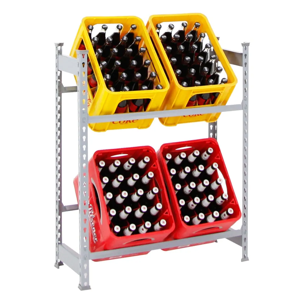 Das Getränkekistenregal CAMEL von PROREGAL ist ein qualitativ hochwertiges Getränkekistenregal und durch das einfache Stecksystem schnell zu montieren. Das Regal hat eine hohe Stabilität und ist ideal, um im Aufenthaltsraum, in der Garage oder in der Kantine die Getränkekisten aufzubewahren.