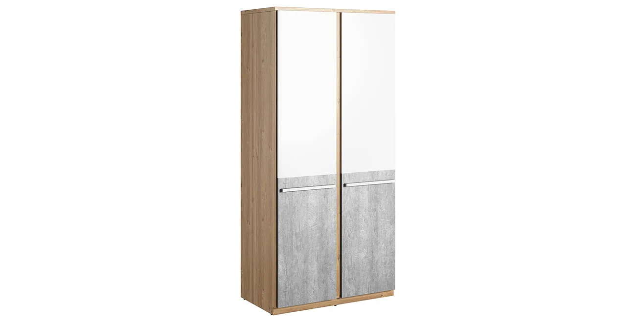 Zweitüriger Kleiderschrank PLANO 2 mit Stange und einem internen Bücherregal mit Regalen